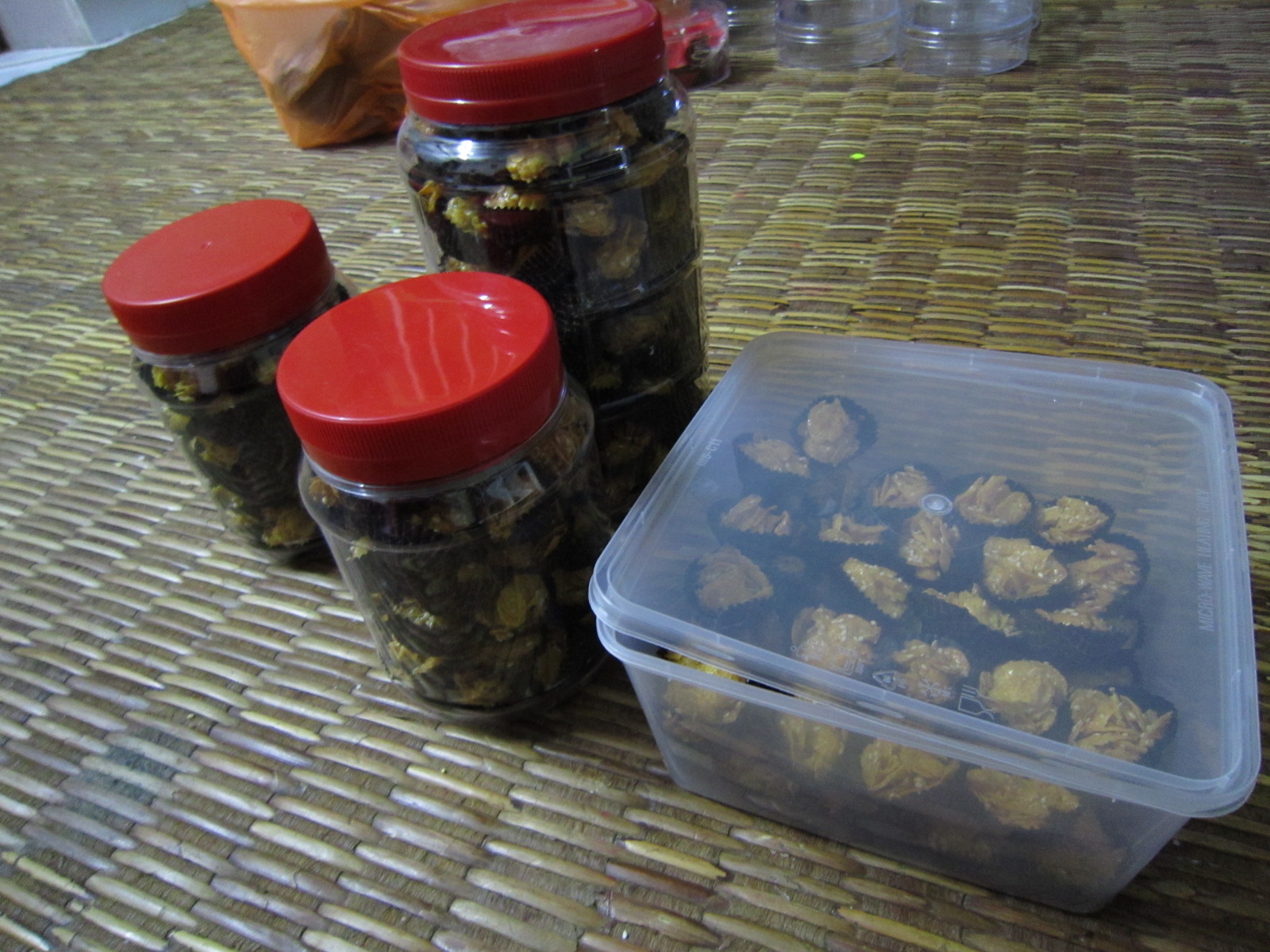 dua kali dalam bulan pose ni aku buat cornflakes nadu dgn gigihnya. 1st masa 15/8 and 2nd round 27/8.yg 1st berjaya dapat 1 1/2 balang yg tinggi.dah selamat masuk perut aku skit, perut bdk2 opis skit, dan 1 balang yg penuh aku bg kat pait abg ipar aku.2nd round punya buat, aku dapat 1 balang tinggi penuh, 2 balang penuh saiz balang kuih bangkit dan 1 tupperware 4 segi. 3 balang tu utk umah mak aku n umah mertua. yg tupperware 4 segi akan dibahagi 2 utk kak fida n umah babah.tercapai jugak niat murni aku.walaupun simple je kan kuih yg aku buat, still memerlukan semangat juang yg tinggi utk melawan nafsu malas nak buat.bahan2 semua aku beli kat bakeri tpt kak fida selalu beli barang utk coklat n kek dia. sekilo cornflakes aku boleh dapat dalam 300 biji cornflakes. berbaloi la drpada beli kan. cuma masa dan tenaga la kan. modal bwh rm30. tapi ada jugak yg kehangusan akibat tetiba perut aku sakit nak beri2.tak kisahla kan. yg hangit jawapannya ke tong sampah la kan.silala tgk gambar kt bawah.ni gambar masa 2nd round.
